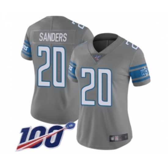 >Women's Detroit Lions #20 Barry Sanders Limited Steel Rush Vapor Untouchable 100th Season Football Jersey