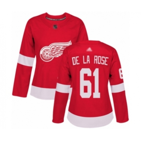 Women's Detroit Red Wings #61 Jacob de la Rose Authentic Red Home Hockey Jersey
