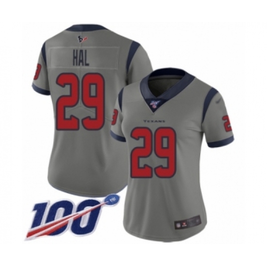 >Women's Houston Texans #29 Andre Hal Limited Gray Inverted Legend 100th Season Football Jersey
