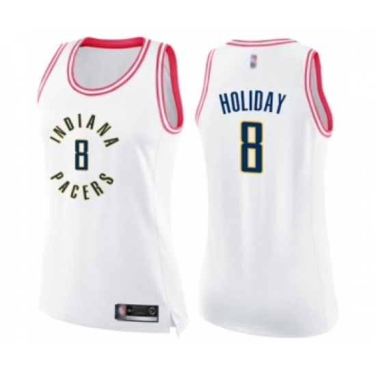 Women's Indiana Pacers #8 Justin Holiday Swingman White Pink Fashion Basketball Jersey