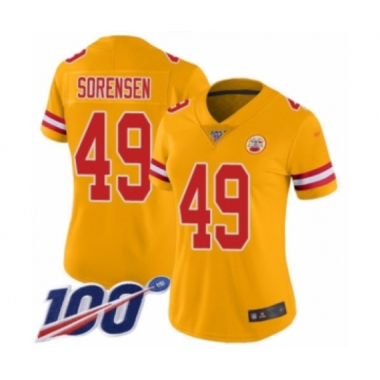 >Women's Kansas City Chiefs #49 Daniel Sorensen Limited Gold Inverted Legend 100th Season Football Jersey
