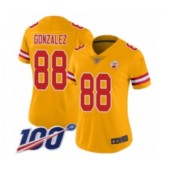 Women's Kansas City Chiefs #88 Tony Gonzalez Limited Gold Inverted Legend 100th Season Football Jersey