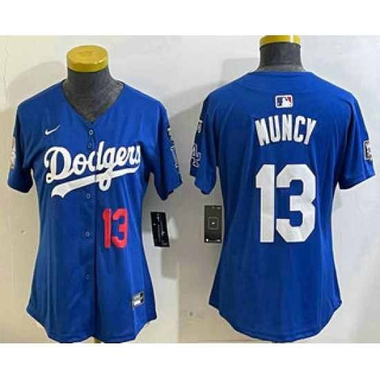 Women's Los Angeles Dodgers #13 Max Muncy Number Blue 2024 World Series With Fernando 34 Fashion Limited Stitched Jerseys