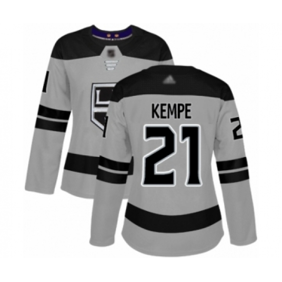 Women's Los Angeles Kings #21 Mario Kempe Authentic Gray Alternate Hockey Jersey