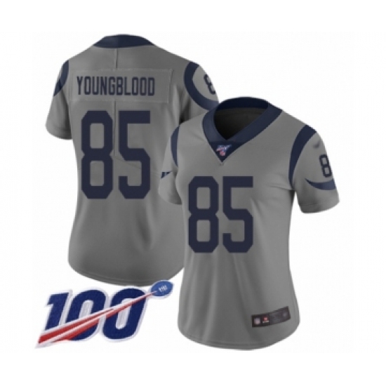 Women's Los Angeles Rams #85 Jack Youngblood Limited Gray Inverted Legend 100th Season Football Jersey