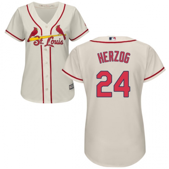 Home>MLB>St. Louis Cardinals>Whitey Herzog>Women's Majestic St. Louis Cardinals #24 Whitey Herzog Authentic Cream Alternate Cool Base MLB Jersey