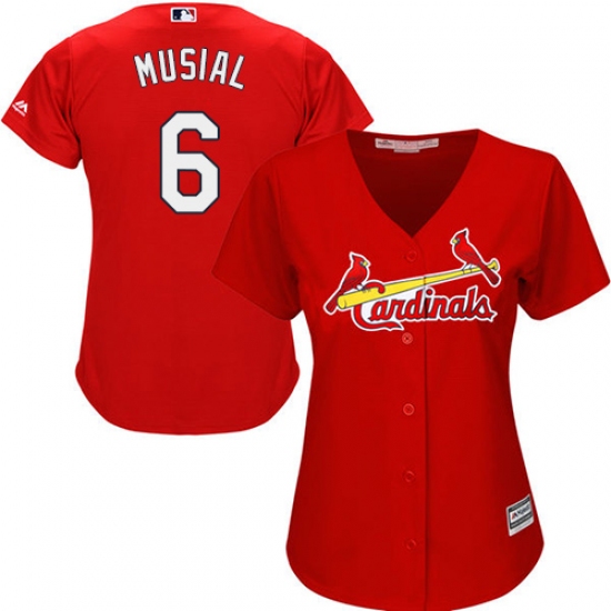 Home>MLB>St. Louis Cardinals>Stan Musial>Women's Majestic St. Louis Cardinals #6 Stan Musial Authentic Red Alternate Cool Base MLB Jersey
