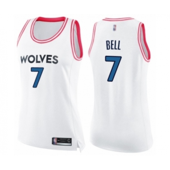 Women's Minnesota Timberwolves #7 Jordan Bell Swingman White Pink Fashion Basketball Jersey