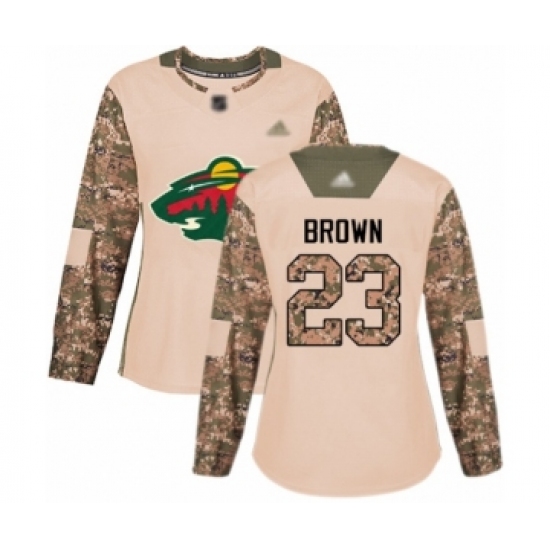Women's Minnesota Wild #23 J.T. Brown Authentic Camo Veterans Day Practice Hockey Jersey