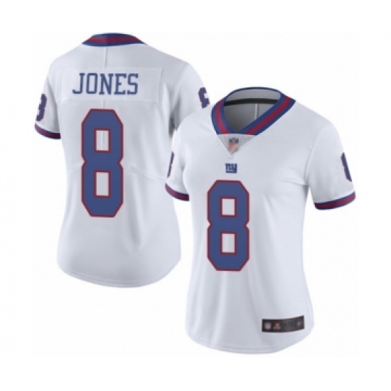 >Women's New York Giants #8 Daniel Jones Limited White Rush Vapor Untouchable Football Jersey