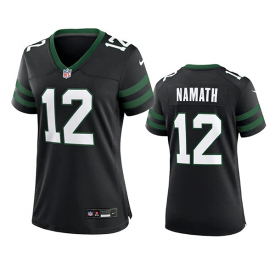 >Women's New York Jets #12 Joe Namath Black 2024 Football Stitched Jersey(Run Small)