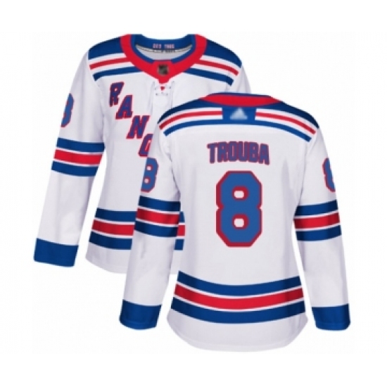 >Women's New York Rangers #8 Jacob Trouba Authentic White Away Hockey Jersey