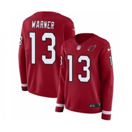 >Women's Nike Arizona Cardinals #13 Kurt Warner Limited Red Therma Long Sleeve NFL Jersey