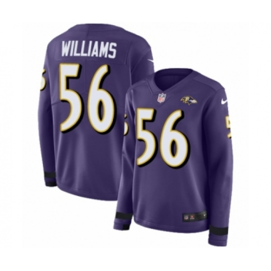 >Women's Nike Baltimore Ravens #56 Tim Williams Limited Purple Therma Long Sleeve NFL Jersey