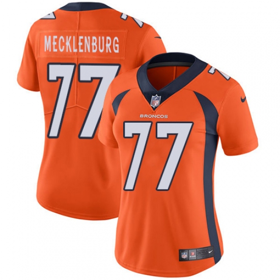 Home>NFL>Denver Broncos>Karl Mecklenburg>Women's Nike Denver Broncos #77 Karl Mecklenburg Orange Team Color Vapor Untouchable Limited Player NFL Jersey