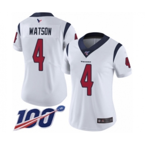 Women's Nike Houston Texans #4 Deshaun Watson White Vapor Untouchable Limited Player 100th Season NFL Jersey