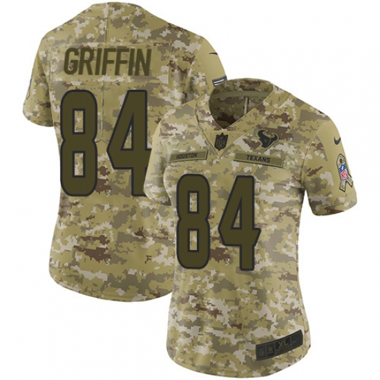 >Women's Nike Houston Texans #84 Ryan Griffin Limited Camo 2018 Salute to Service NFL Jersey
