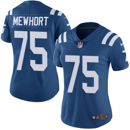Home>NFL>Indianapolis Colts>Jack Mewhort>Women's Nike Indianapolis Colts #75 Jack Mewhort Royal Blue Team Color Vapor Untouchable Limited Player NFL Jersey