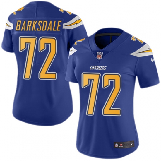Home>NFL>Los Angeles Chargers>Joe Barksdale>Women's Nike Los Angeles Chargers #72 Joe Barksdale Limited Electric Blue Rush Vapor Untouchable NFL Jersey