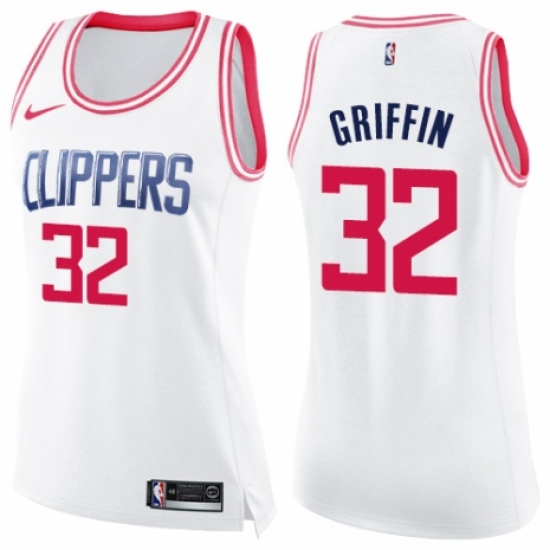 Women's Nike Los Angeles Clippers #32 Blake Griffin Swingman White Pink Fashion NBA Jersey