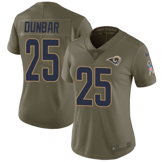 Home>NFL>Los Angeles Rams>Lance Dunbar>Women's Nike Los Angeles Rams #25 Lance Dunbar Limited Olive 2017 Salute to Service NFL Jersey