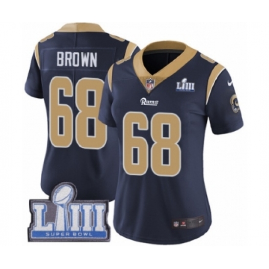 Women's Nike Los Angeles Rams #68 Jamon Brown Navy Blue Team Color Vapor Untouchable Limited Player Super Bowl LIII Bound NFL Jersey