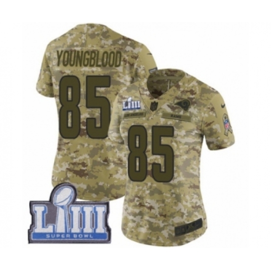 Women's Nike Los Angeles Rams #85 Jack Youngblood Limited Camo 2018 Salute to Service Super Bowl LIII Bound NFL Jersey