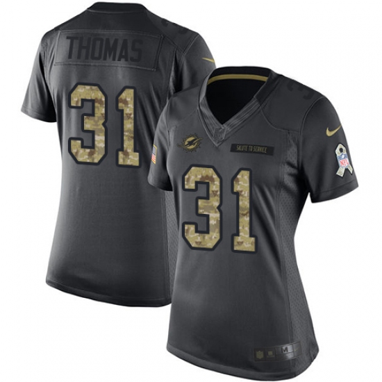 Women's Nike Miami Dolphins #31 Michael Thomas Limited Black 2016 Salute to Service NFL Jersey