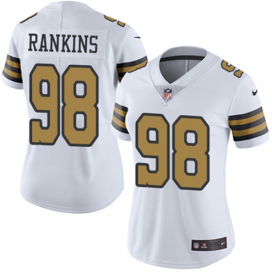 Home>NFL>New Orleans Saints>Sheldon Rankins>Women's Nike New Orleans Saints #98 Sheldon Rankins Limited White Rush Vapor Untouchable NFL Jersey