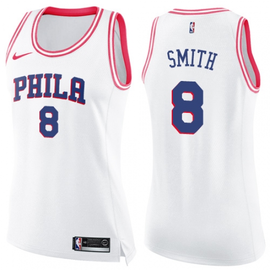Women's Nike Philadelphia 76ers #8 Zhaire Smith Swingman White Pink Fashion NBA Jersey