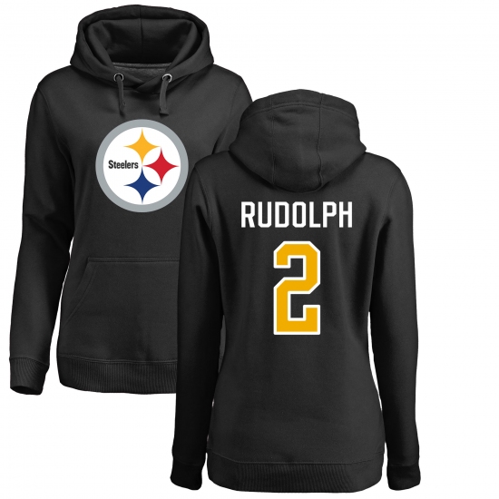 >Women's Nike Pittsburgh Steelers #2 Mason Rudolph Black Name & Number Logo Pullover Hoodie