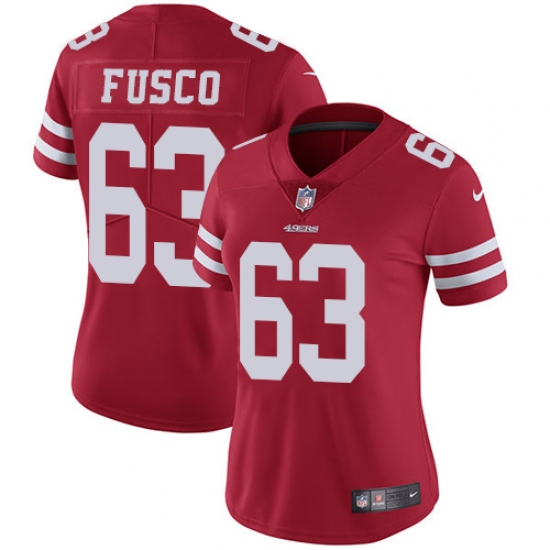 Women's Nike San Francisco 49ers #63 Brandon Fusco Red Team Color Vapor Untouchable Limited Player NFL Jersey