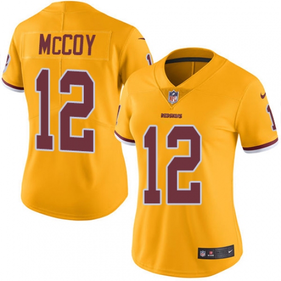 Home>NFL>Washington Redskins>Colt McCoy>Women's Nike Washington Redskins #12 Colt McCoy Limited Gold Rush Vapor Untouchable NFL Jersey