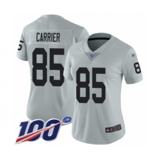 >Women's Oakland Raiders #85 Derek Carrier Limited Silver Inverted Legend 100th Season Football Jersey