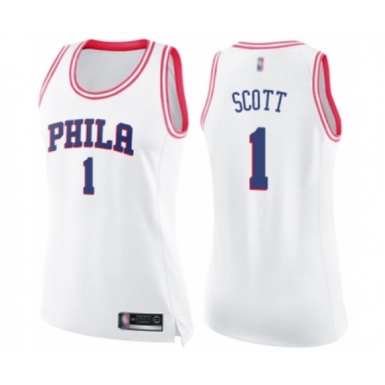 Women's Philadelphia 76ers #1 Mike Scott Swingman White Pink Fashion Basketball Jersey
