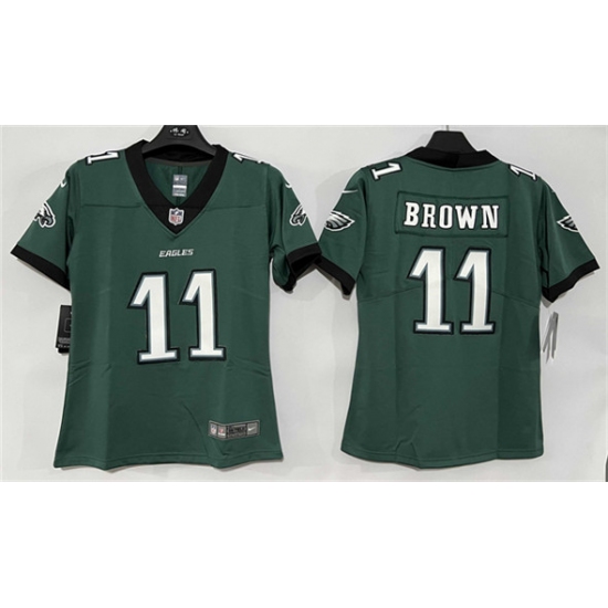 >Women's Philadelphia Eagles #11 A. J. Brown Green New Vapor Untouchable Limited Football Stitched Jersey(Run Small)