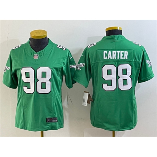 Women's Philadelphia Eagles #98 Jalen Carter Green 2023 F.U.S.E. Stitched Football Jersey