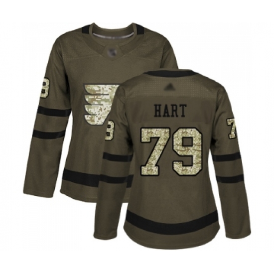 >Women's Philadelphia Flyers #79 Carter Hart Authentic Green Salute to Service Hockey Jersey