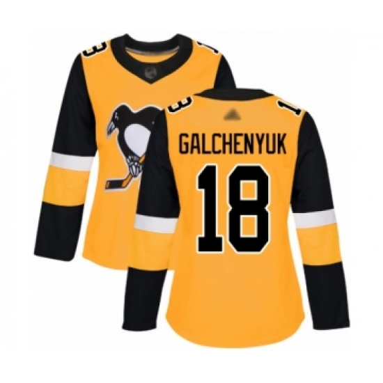 >Women's Pittsburgh Penguins #18 Alex Galchenyuk Authentic Gold Alternate Hockey Jersey