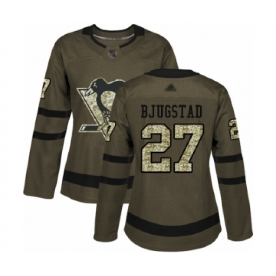 >Women's Pittsburgh Penguins #27 Nick Bjugstad Authentic Green Salute to Service Hockey Jersey