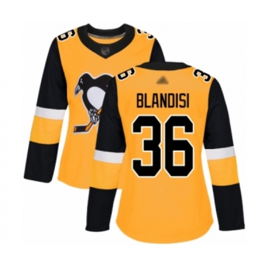 >Women's Pittsburgh Penguins #36 Joseph Blandisi Authentic Gold Alternate Hockey Jersey