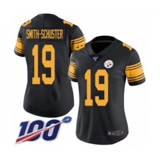 >Women's Pittsburgh Steelers #19 JuJu Smith-Schuster Limited Black Rush Vapor Untouchable 100th Season Football Jersey