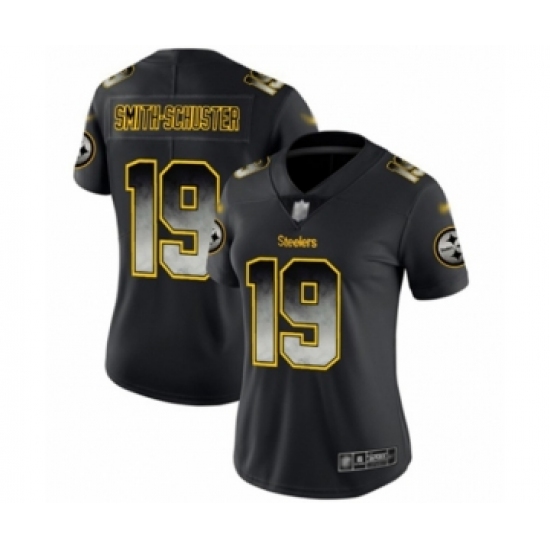 >Women's Pittsburgh Steelers #19 JuJu Smith-Schuster Limited Black Smoke Fashion Football Jersey