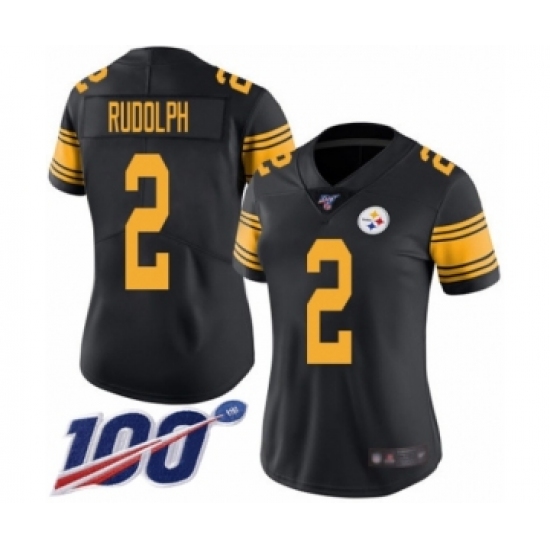 >Women's Pittsburgh Steelers #2 Mason Rudolph Limited Black Rush Vapor Untouchable 100th Season Football Jersey