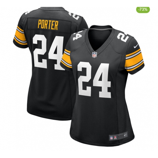 >Women's Pittsburgh Steelers #24 Joey Porter Jr. Black Stitched Game Jersey