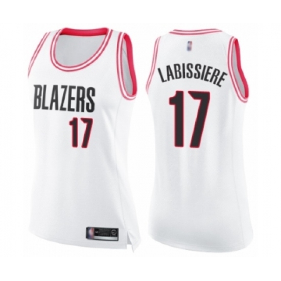 >Women's Portland Trail Blazers #17 Skal Labissiere Swingman White Pink Fashion Basketball Jersey