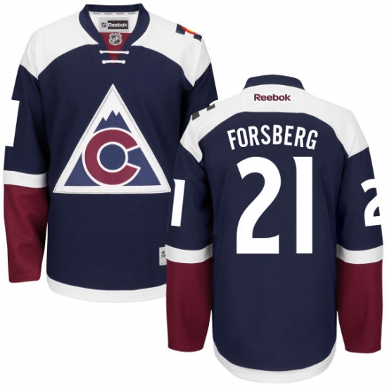 Women's Reebok Colorado Avalanche #21 Peter Forsberg Authentic Blue Third NHL Jersey