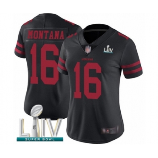 >Women's San Francisco 49ers #16 Joe Montana Black Vapor Untouchable Limited Player Super Bowl LIV Bound Football Jersey