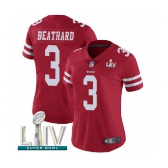>Women's San Francisco 49ers #3 C. J. Beathard Red Team Color Vapor Untouchable Limited Player Super Bowl LIV Bound Football Jersey
