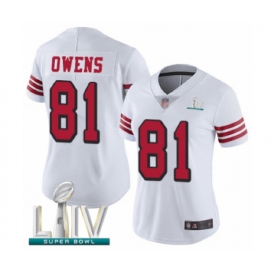 >Women's San Francisco 49ers #81 Terrell Owens Limited White Rush Vapor Untouchable Super Bowl LIV Bound Football Jersey